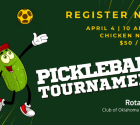 Pickleball Tournament – April 4, 2026 Chicken ‘n Pickle – 8400 N Oklahoma Ave, Oklahoma City, OK 73114 Time: 10:ooam – 1:00pm Rotarians and their partners are invited to join in the fun. No pickleball partner? No problem! Our committee will match you with a partner of compatible skill. $50.00 per player – This can […]