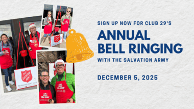 Each year Club 29 takes one day to support the Salvation Army by ringing bells at a variety of locations around the metro area. It’s a great way to help fulfill the service obligation we all take when we join Rotary. This year we will be ringing Friday, Dec 5. Please choose your location and […]